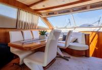 'Gorgeous' is a beautiful Canados 72'. She was built in 2004 and last refitted in 2021/2022. She presents a comfortable leather salon with earthy colors and a cozy dining area on the Main deck. She accommodates up to ten guests in four spacious en-suite cabins - one Master with walk-in wardrobe, one VIP, one cabin with a semi-double bed plus a pullman berth and one twin cabin with a pullman berth as well. Her aft deck is fitted with a large raised table surrounded by chairs and an integrated sofa for alfresco dining. The Main deck connects around to the foredeck, where a spacious sun pad is laid out across the bow for uninterrupted views and sunlight. On the sundeck guests will enjoy casual alfresco dining and sunbathing at the two sun pads placed on the foredeck. Her professional crew of three will guarantee an excellent charter experience and will pamper the guests throughout their vacations!