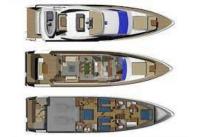 This beautiful Aicon 75' - m/y ULISSE has a very comfortable and modern design. She boasts refined and sophisticated interiors. The large aft deck leads to the open and light salon - panoramic windows letting natural light flow in freely all around the yacht. The large Master suite is located on the lower deck and the hallway leads to the 2 twin suites and the large VIP suite. A Very spacious fly deck, equipped with mini bar, dining area, BBQ and the relaxing sun deck complete an unique experience.